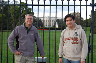 Na het inchecken meteen richting het Witte Huis gegaan. Inderdaad niet al te groot maar best wel indrukwekkend in zijn omgeving. En met het Washington Memorial, een grote oblix-achtige structuur ervoor, en prachtige parken eromheen, maakt het allemaal een rustige indruk. Relatief weinig beveiliging om tot het hek voor het Witte Huis te komen, en dat verbaasde ons wel een beetje. En ook al was de vlag in top, the President was niet thuis. Sinds 9/11 is de vlag altijd in top werd ons verteld...