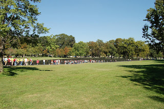 Zaterdag hebben we een wandeling gemaakt naar het Washington Memorial, World War II memorial, Lincoln Memorial, Vietnam Veterans Memorial, Einstein Memorial en aan het eind van de dag heb ik nog het US Holocaust Memorial Museum bezocht. Allemaal indrukwekkend op hun eigen manier. De aanwezigheid van veteranen in het WW-II memorial, de bijna 60.000 namen van het Vietnam memorial en het imposante standbeeld van Lincoln in zijn eigen memorial. Maar voor mij toch wel het meest indrukwekkend was het zeer goed opgezette overzicht in het USHMM, van het begin tot het einde van het nazisme en anti-semitisme in Duitsland. Met verrassend veel echte objecten, zoals een treinwagon, deur van een gaskamer en duizenden schoenen, en natuurlijk de vreselijke fotos en documentaires.