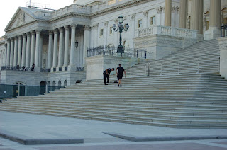 Vervolgens zijn we naar de andere kant gelopen, heb ik een tijdje met een politieman staan praten, die volgende maand voor het eerst van zijn leven een reis buiten de VS gaat maken (Parijs, dus geen al te slechte keus), en vervolgens gezien hoe men reageert als er een achtergebleven tas wordt gesignaleerd (publiek wordt verzocht zich te verwijderen nadat het eerst is gevraagd of die tas van een van hen is, en vervolgens gaat men voorzichtig op de tas af, en als het niet vertrouwd wordt belt men de bomb squad, ofwel de explosieven-opruimingsdienst). Wij zijn toen naar het Hooggerechtshof gelopen en vervolgens de bibliotheek van het Congres. Omdat het zondag is was het helaas niet mogelijk om dit alles te bezoeken, dus moeten we dat een andere keer doen.